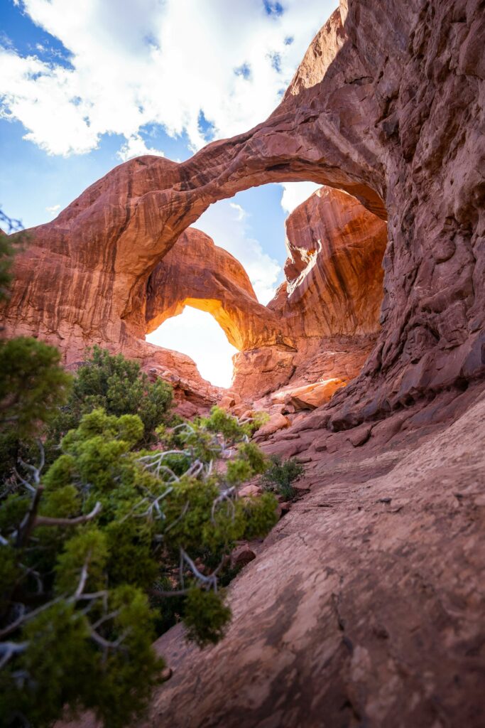 With so many arches to choose from, we settled on a few to hike to. The Devil’s Garden trail covers a handful of arches all along one route. Since there’s no shade along this trail I recommend hiking it early in the morning or late in the day. Pine, Landscape, Partition, Black and Double O are just some of the arches you’ll see along this route.